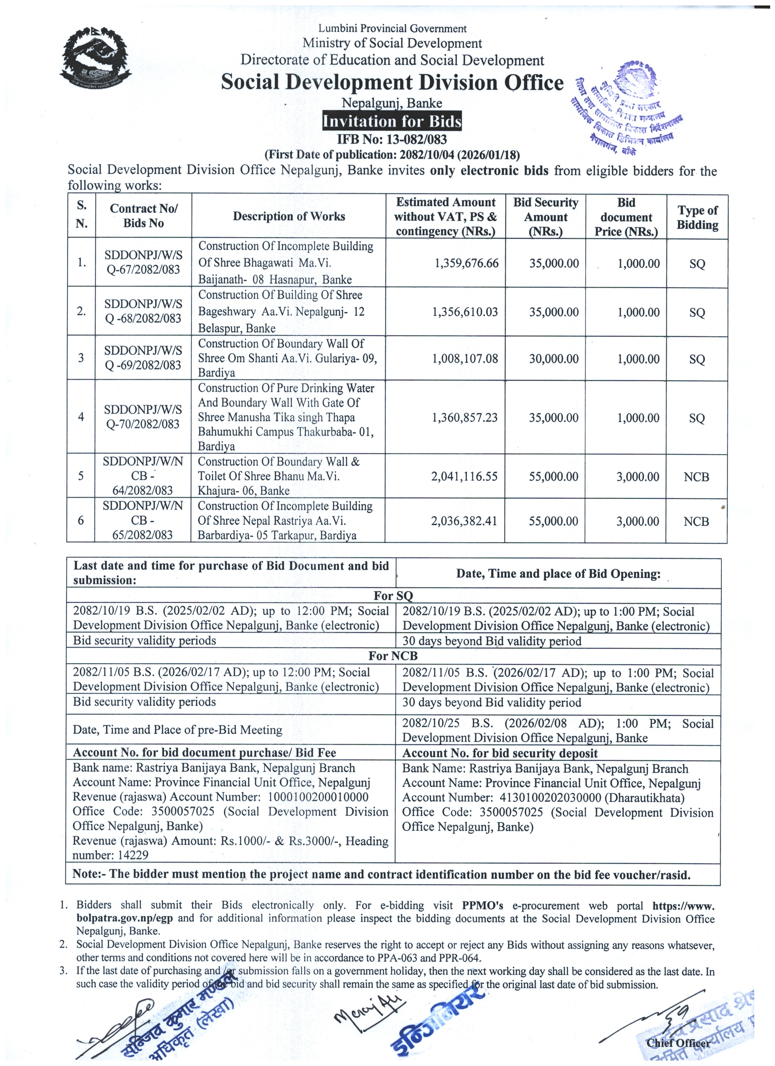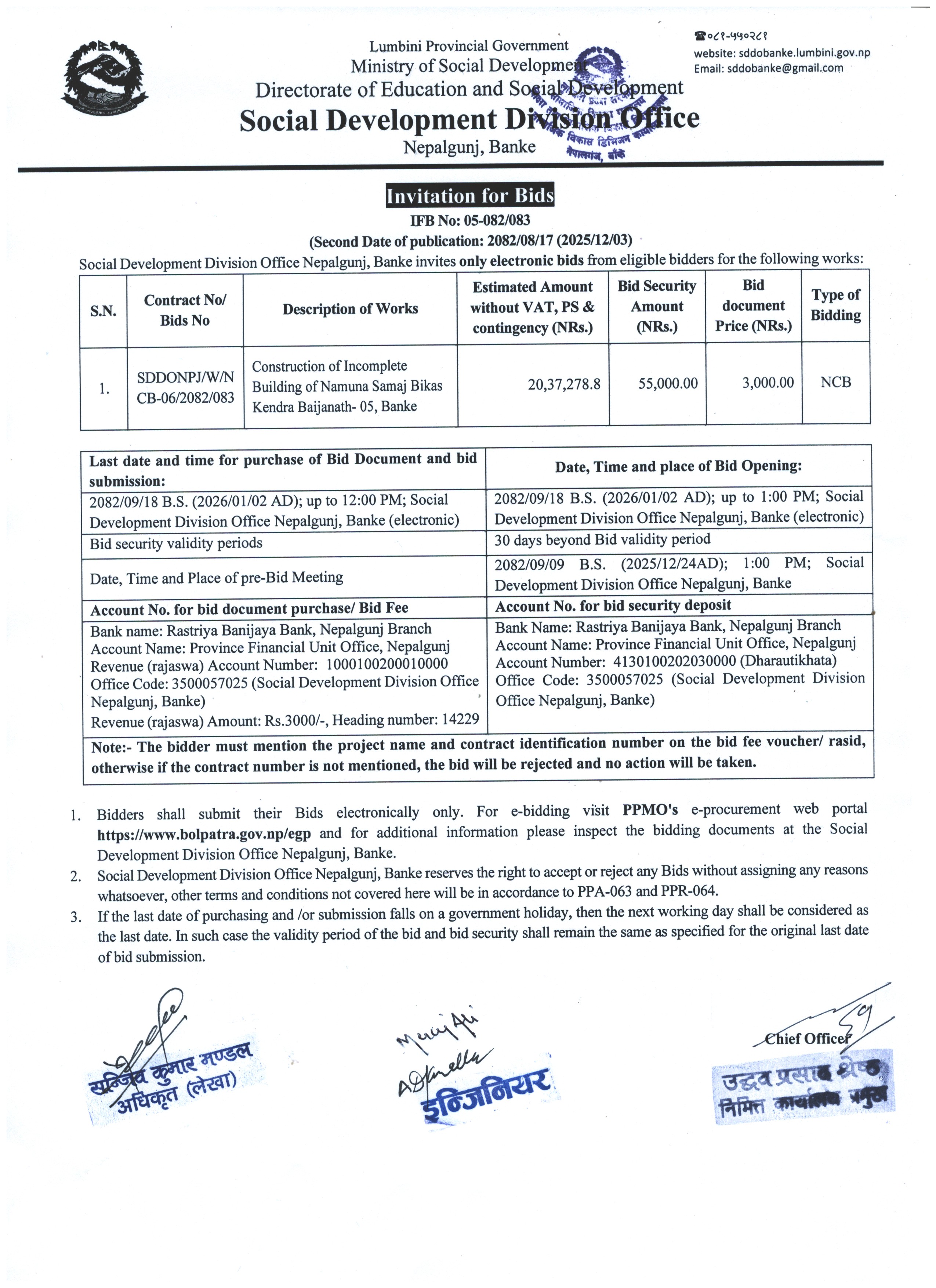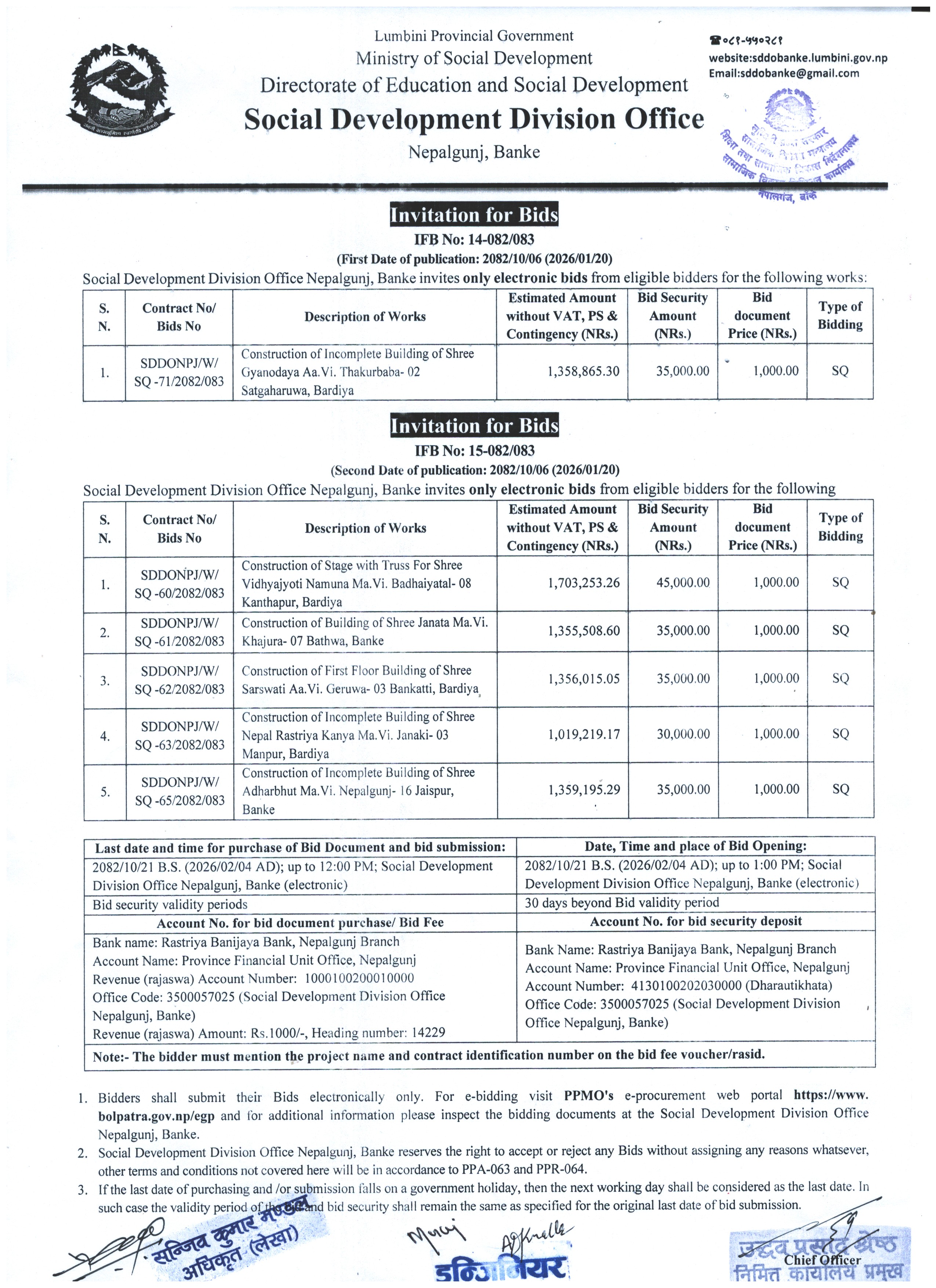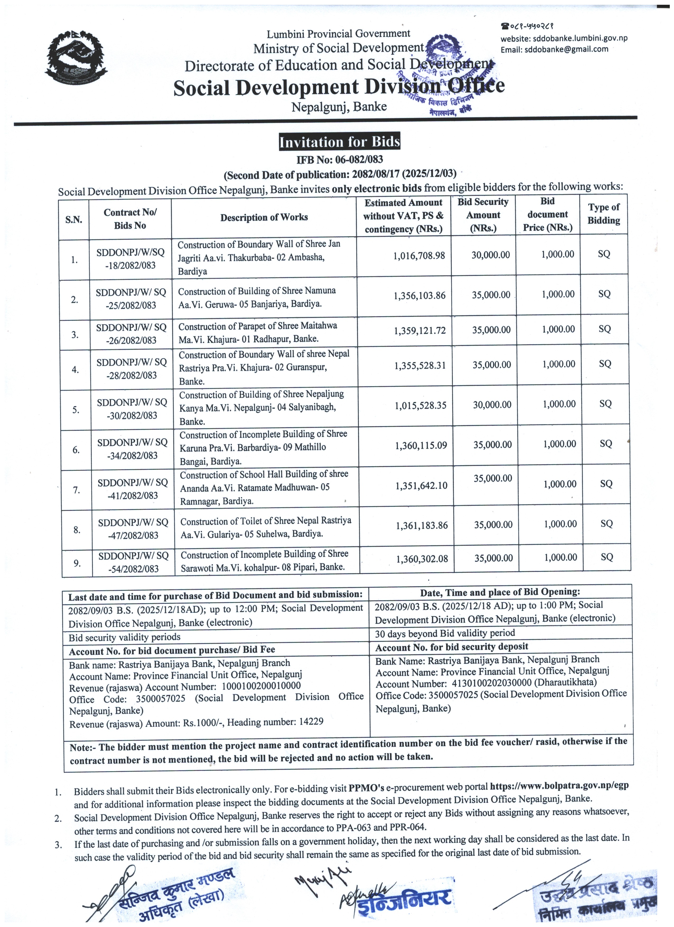 हाल मुलुकमा संघ, प्रदेश र स्थानीय गरी ३ तहको सरकार रहेका छन् । लुम्बिनी प्रदेशको प्रदेश सरकार अन्तर्गत सामाजिक विकास मन्त्रालय रहेको छ । प्रदेश सरकार, मन्त्रिपरिषदको मिति २०७६ साल कार्तिक १८ गतेको निर्णयानुसार शिक्षा, श्रम तथा रोजगार, युवा तथा खेलकुद, विज्ञान तथा प्रविधि र सामाजिक विकास तर्फका जिल्ला तथा स्थानीय स्तरमा सञ्चालन हुने कार्यक्रमहरुको सञ्चालन तथा कार्यान्वयनका लागि सामाजिक विकास मन्त्रालय, शिक्षा तथा सामाजिक विकास निर्देशनालय अन्तर्गत रहने गरी प्रदेश भित्र स्थापित ६ वटा सामाजिक विकास डिभिजन कार्यालयहरु मध्ये यस सामाजिक विकास डिभिजन कार्यालय नेपालगंज बाँकेको स्थापना भएको हो । यस डिभिजन कार्यालयको कार्यक्षेत्र बाँके र बर्दिया जिल्ला रहेको छ । यस डिभिजन कार्यालयको विधिवत उद्घाटन मिति २०७६ साल मंसिर १० गतेका दिन सामाजिक विकास महाशाखा प्रमुख शारदा बस्यालज्यूबाट भएको हो। साविक ब्याबसायिक तथा सीप बिकास तालिम केन्द्र बाँकेको भवनमा यो कार्यालय स्थापना भई सञ्चालनमा रहेको छ । प्रदेश सरकारको सामाजिक विकास मन्त्रालय तथा शिक्षा तथा सामाजिक विकास निर्देशनालयको मातहतमा रही तोकिए लक्ष्यहरु प्राप्तिका निम्ति कार्य गर्नु यस कार्यालयको मुख्य जिम्मेवारी हो । प्रदेश सरकारको निर्णय बमोजिम साविकको व्यावसायिक तथा सीप विकास तालिम केन्द बाँके समेत यसै कार्यालयमा समायोजन भएको छ । कार्यालय मार्फत मुलुक र यस क्षेत्रमा व्याप्त गरिबी र बेरोजगारी समस्याहरुलाई समाधान गर्ने अभिप्रायले छोटो तथा मध्यमकालीन ब्यवसायिक एवं सीपमूलक आधारभुत तथा अपग्रेड तालीमहरु कटाई सिलाई, बिद्युत जडान, प्लम्बीङ्ग, केशश्रृगार, बेल्डीङ्ग, इलेक्ट्रोनिक्स मर्मत, कम्प्युटर, अटोमेकानिक्स र मोटरसाईकल मर्मत लगायतका विभिन्न तालिमहरु समेत नियमित रुपमा हुँदै आएको छन । साथै कार्यालयले प्राविधिक शिक्षा तथा व्यावसायिक तालिम केन्द्रको राष्ट्रिय सीप परीक्षण केन्द्रसंग सहकार्य गरी सीप सिकेका व्यक्तिहरुको सीप परीक्षण कार्य समेत गराउदै आएको छ ।