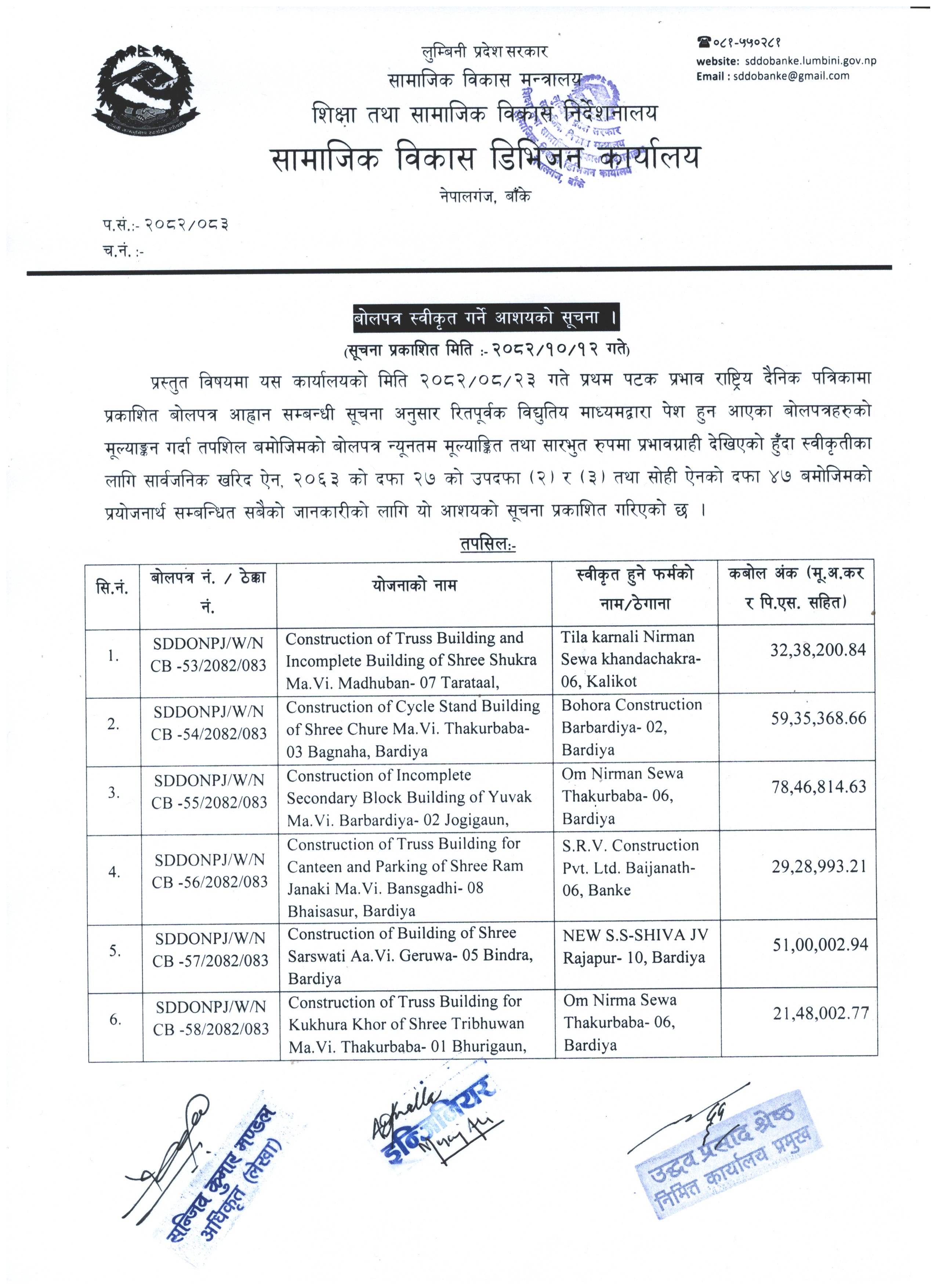 सामाजिक विकास मन्त्रालयका सचिव श्री भुपेन्द्र थापा ज्यूबाट सामाजिक विकास डिभिजन कार्यालय बाँकेको अनुगमन