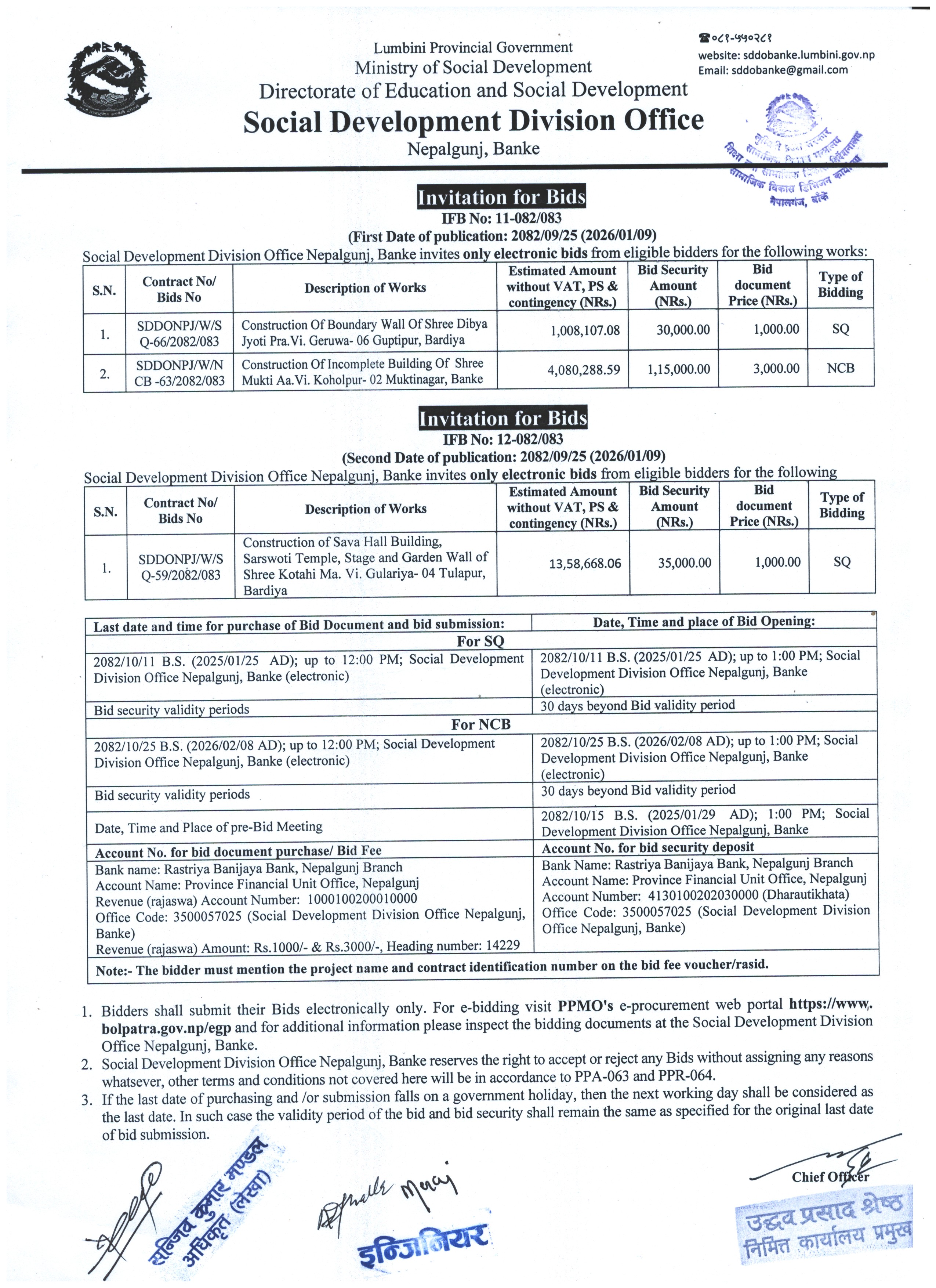 | 9 | Invitation for Online Bids. Date of First Publication 2082/09/25 (2026/01/09 | सूचना तथा समाचारहरु | 2082-09-25 | View | Download |